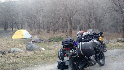 We chatted with Rich for a little while, who had moved to West Virginia from Florida, if I'm remembering correctly. He got rid of his cruiser so he could commute year-round on his Tiger, tackling the snowy mountain passes every day on two wheels. And I thought winter in Massachusetts was a bad place for a motorcycle.